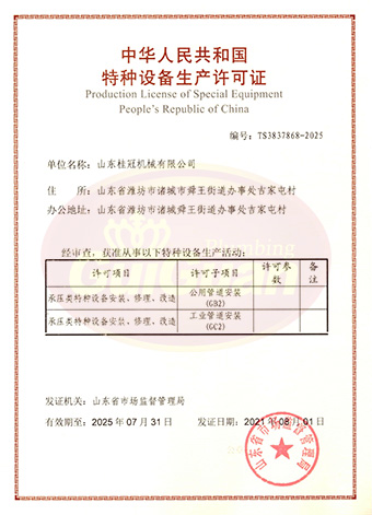 山東桂冠機(jī)械有限公司成立于2008年,注冊(cè)資金1600萬(wàn)元,現(xiàn)有員工200多人,中高級(jí)技術(shù)管理人員45人,占地面積27000多平方米,生產(chǎn)車間面積12000多平方米。公司具備壓力容器產(chǎn)品的設(shè)計(jì)、制造(證書編號(hào)為:TS2237703-2025)、壓力管道安裝(證書編號(hào)為TS3837607-2025)全套壓力容器資質(zhì);通過(guò)國(guó)家ISO9001質(zhì)量管理體系認(rèn)證、美國(guó)ASME認(rèn)證、歐盟CE認(rèn)證;擁有建筑安裝機(jī)電工程專業(yè)承包叁級(jí)資質(zhì)、建筑工程施工總承包叁級(jí)資質(zhì)及對(duì)外貿(mào)易經(jīng)營(yíng)出口權(quán)…